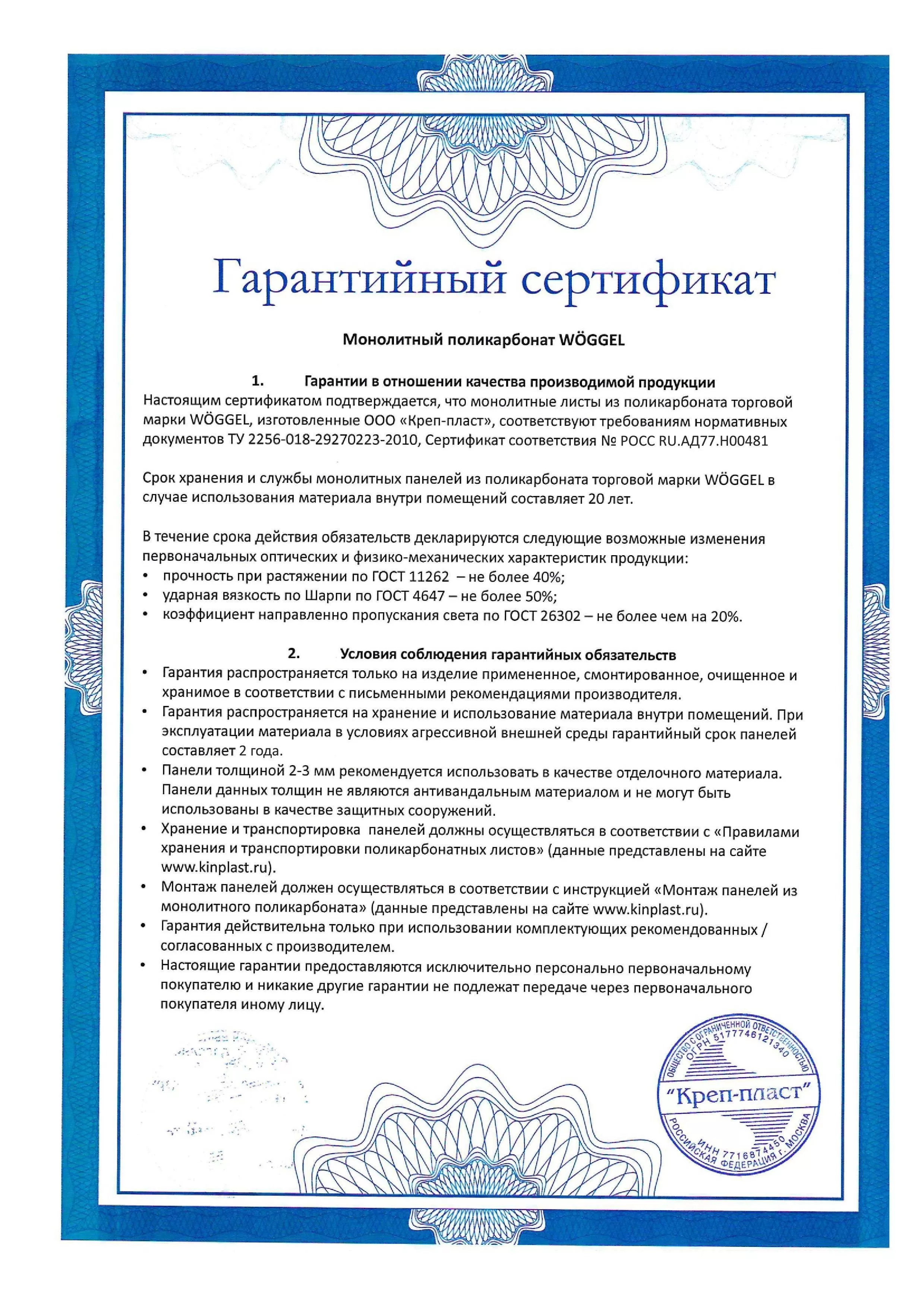 Подтвержденное сертификатами и действующими ГОСТ
