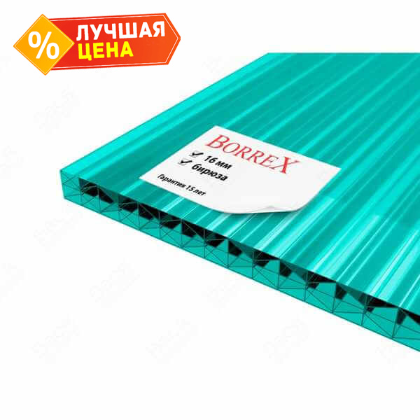 Сотовый поликарбонат 16 мм BORREX бирюза 2100х6000 мм - это прочный и легкий материал, который отлично подходит для использования в различных строительных и дизайнерских проектах. Поликарбонат имеет высокую прочность и устойчивость к воздействию внешних факторов, что делает его идеальным выбором для создания крыш, навесов, ограждений и других конструкций.