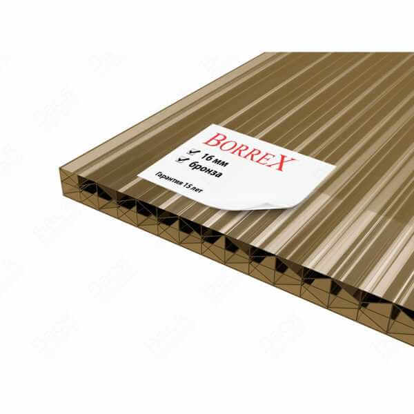 Сотовый поликарбонат 16 мм BORREX бронза 2100х12000 мм