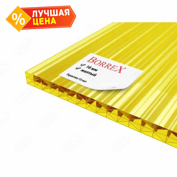 Сотовый поликарбонат 16 мм BORREX желтый 2100х6000 мм - это прочный и легкий материал, который отлично подходит для использования в различных строительных и дизайнерских проектах. Поликарбонат обладает высокой прочностью и устойчивостью к воздействию внешних факторов, что делает его идеальным выбором для создания надежных и долговечных конструкций.