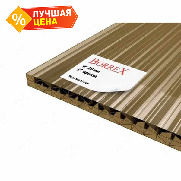 Сотовый поликарбонат 20 мм BORREX бронза 2100х6000 мм