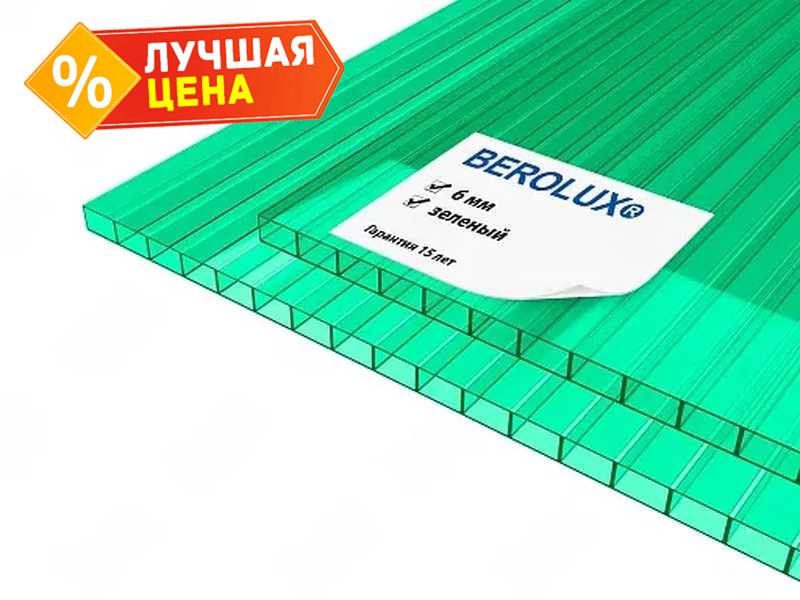 Сотовый поликарбонат 6 мм BEROLUX зелёный 2100х12000 мм