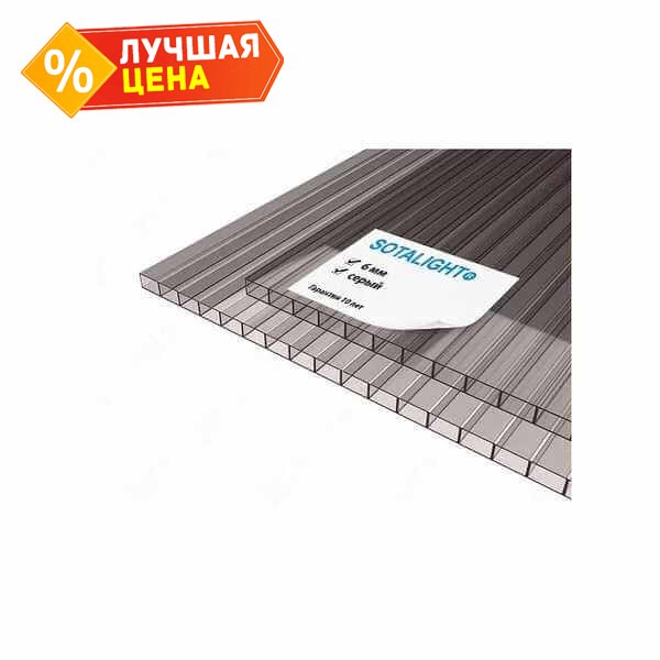 Сотовый поликарбонат 6 мм SOTALIGHT серый 2100х12000 мм