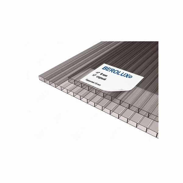 Сотовый поликарбонат 8 мм BEROLUX серый 2100х6000 мм