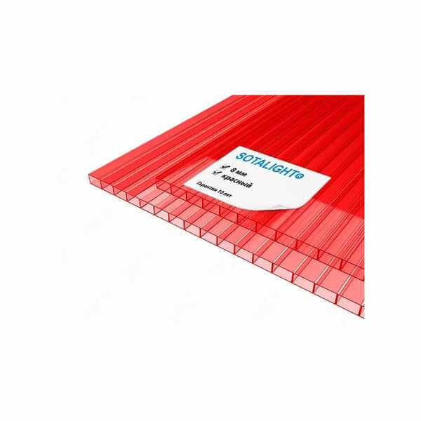 Сотовый поликарбонат 8 мм SOTALIGHT красный 2100х6000 мм - это прочный и легкий материал, который отлично подходит для использования в различных строительных и дизайнерских проектах. Поликарбонат обладает высокой прочностью и устойчивостью к воздействию внешних факторов, что делает его идеальным выбором для создания крыш, навесов, ограждений и других конструкций.