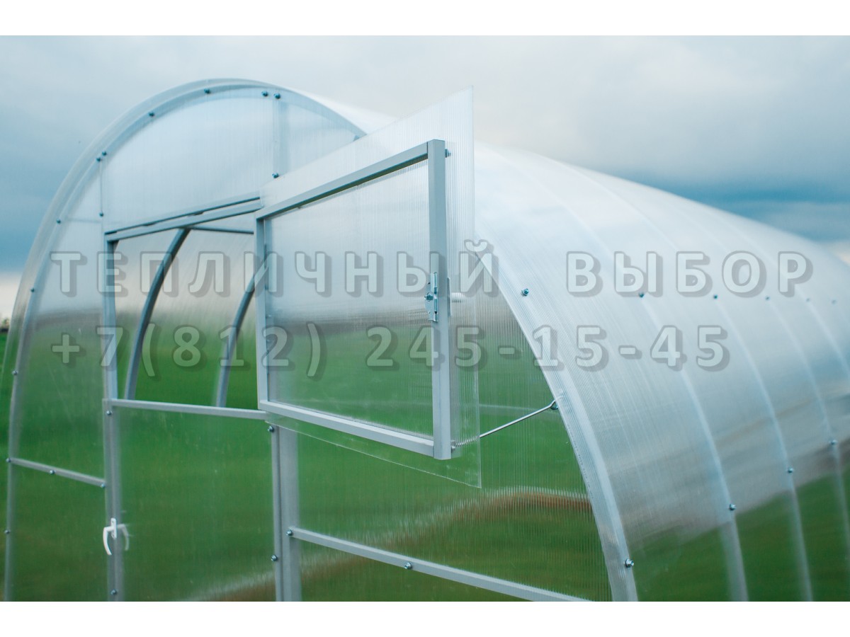 • практичная конструкция: 2 двери и 2 форточки обеспечивают легкий доступ в теплицу и ее проветривание. Размер дверей 171х89 cм, размер форточек в дверях 48х83 см;