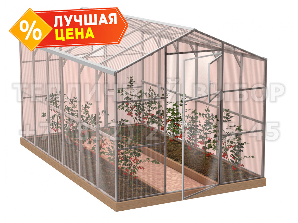 Теплица из поликарбоната-фито Усиленная Домиком 2,3х4 h=2.1 м профиль 25х25 мм