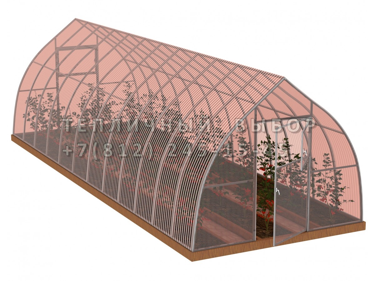 Теплица из поликарбоната-фито Усиленная Капелька 2,5х10 h=2.3 м профиль 25х25 мм