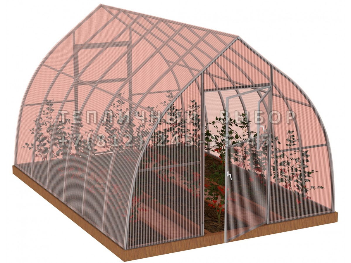 Теплица из поликарбоната-фито Усиленная Капелька 2,5х4 h=2.3 м профиль 25х25 мм