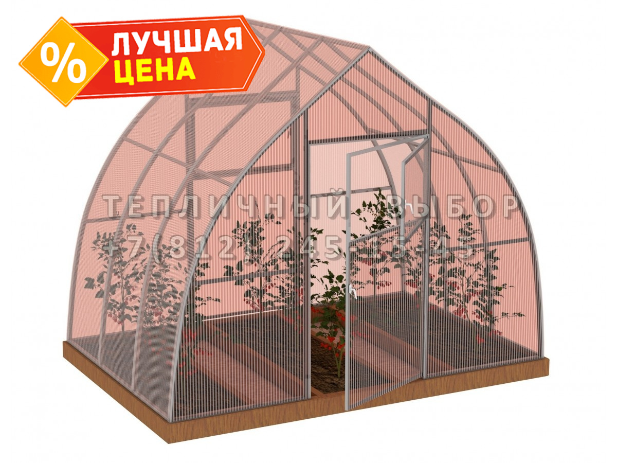 Теплица из поликарбоната-фито Усиленная Капелька 3х2 h=2.3 м профиль 25х25 мм
