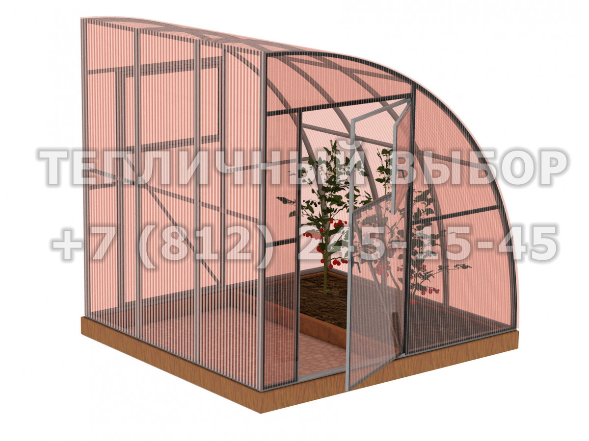 Теплица из поликарбоната-фито Усиленная Пристенная 2,3х2 h=2.1 м профиль 25х25 мм