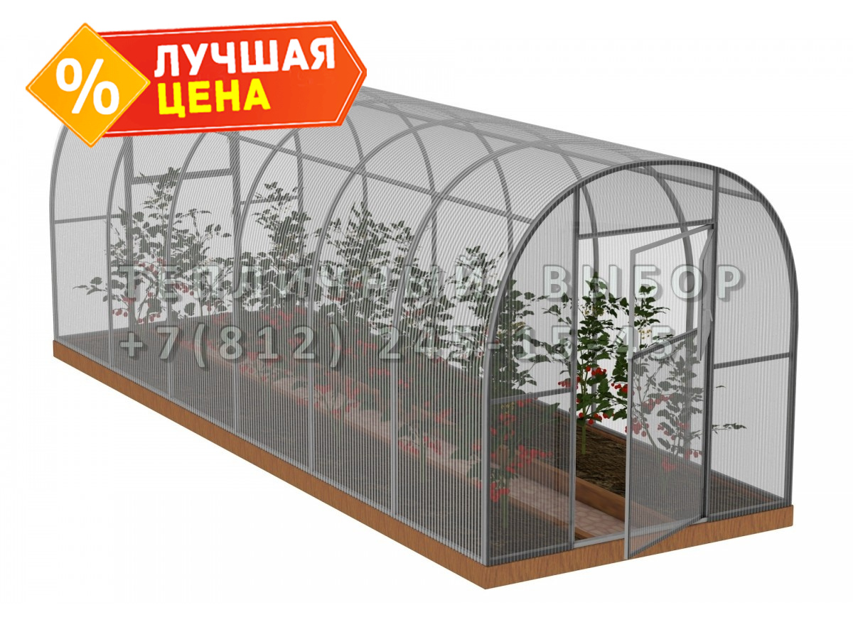 Теплица из поликарбоната Усиленная Арочная 2,1х6 h=2 м профиль 20х20 мм