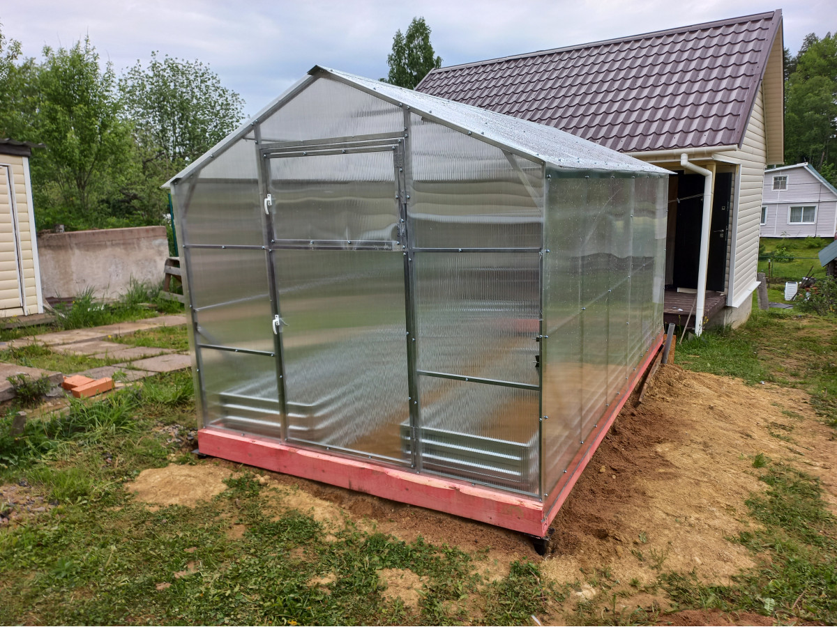 • практичный каркас с дверьми и форточками в каждом торце обеспечивает легкий доступ в теплицу и её проветривание;