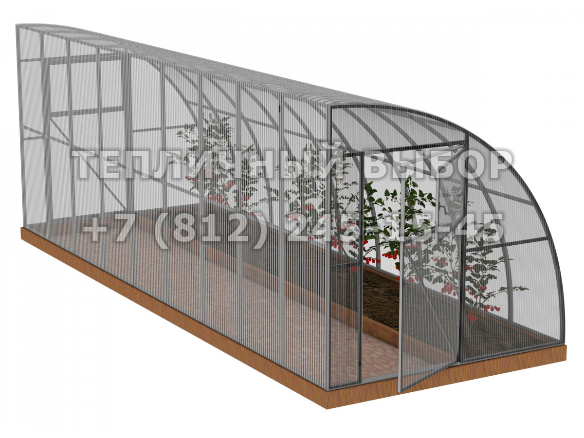 • практичный каркас с дверьми и форточками в каждом торце обеспечивает легкий доступ в теплицу и её проветривание;