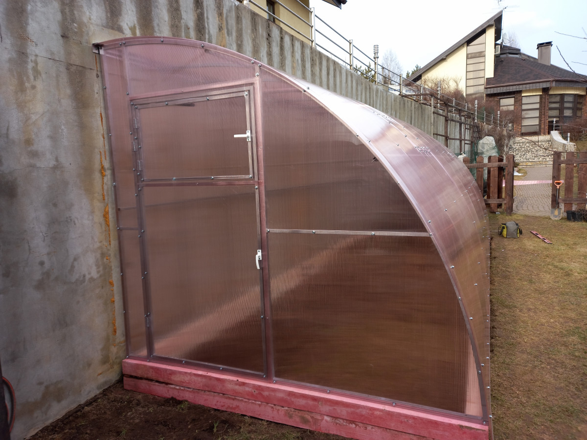 Теплица из поликарбоната Усиленная Пристенная 2,3х12 h=2.1 м профиль 25х25 мм
