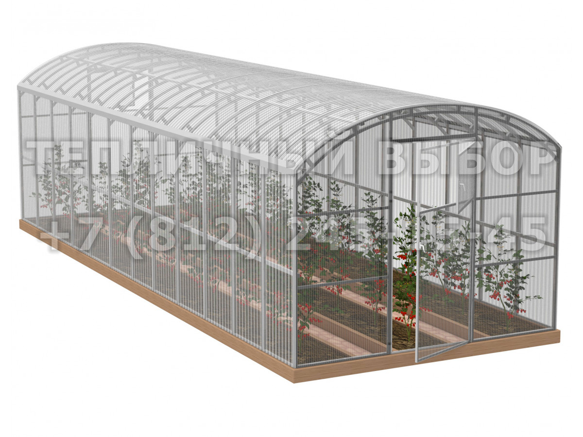 Теплица из поликарбоната Усиленная Прямостенная 2,5х10 h=2.1 м профиль 20х40 мм