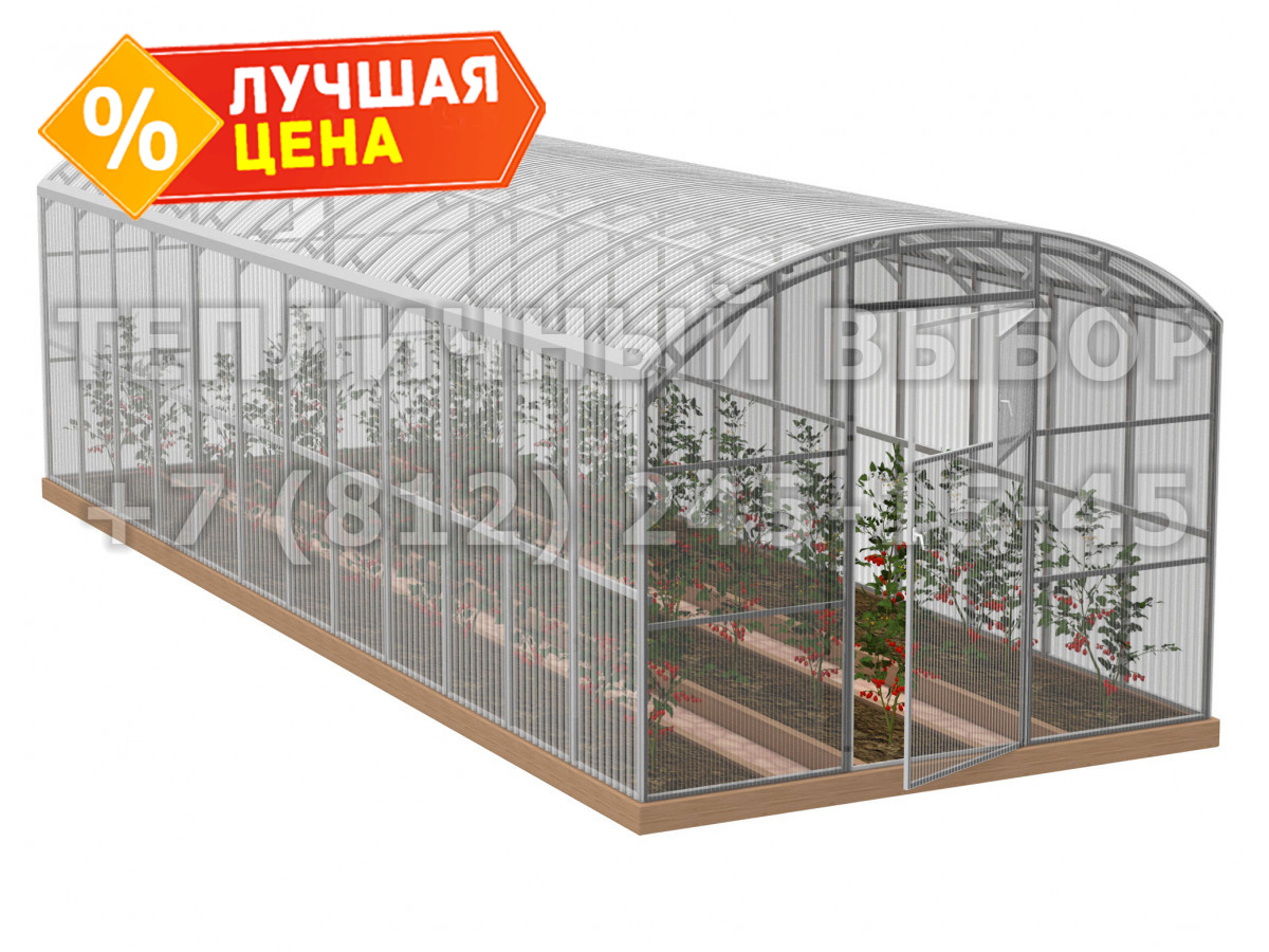 Теплица из поликарбоната Усиленная Прямостенная 3х8 h=2.1 м профиль 20х40 мм