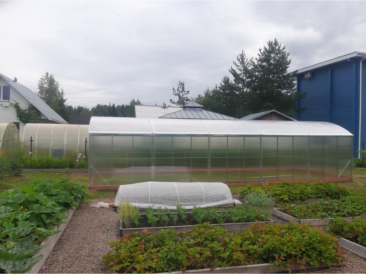 • широкая 4 м, ширина теплицы позволяет организовать 3 широкие полноценные грядки с комфортными проходами между ними;