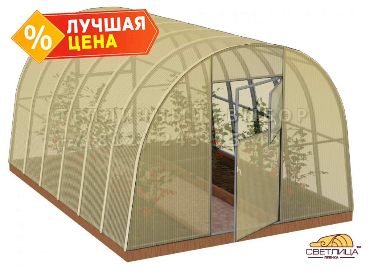 • укрывной материал - легендарная пленка «Светлица» толщиной 150 мкм, имеет уникальный состав, который делает ее прочной, эластичной и долговечной (не менее 7 лет без снятия на зиму)