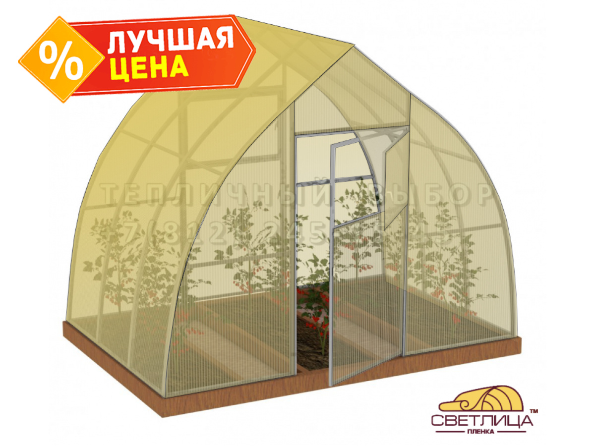 • укрывной материал - легендарная пленка «Светлица» толщиной 150 мкм, имеет уникальный состав, который делает ее прочной, эластичной и долговечной (не менее 7 лет без снятия на зиму)